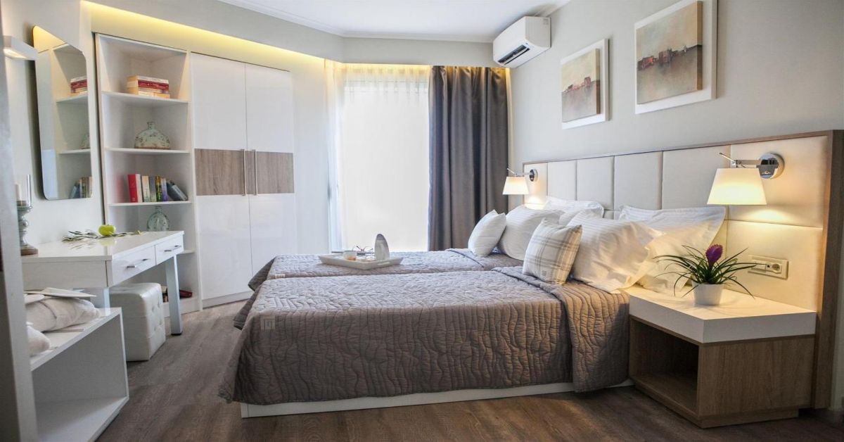 Тройните стаи разполагат с двойно легло и едно единично или 3 единични легла. Джуниър Суити - 2 единични легла или двойно легло и разтегателен диван. Фамилна стая - двойно легло и две единични легла.