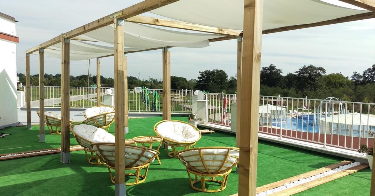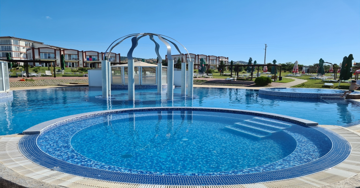 Ресторант с 85 места в основната зала и 35 места в отделна зала за пушачи, лятно бистро с малка зала за 35 човека и голяма панорамна зала за 50 човека, която през пролетта и лятото е отворена с гледка към басейните и хоризонта на юг. Басейновият комплекс се захранва директно с минерална вода, като отделните басейни са с различни температури - басейн за плуване с температура 26-28 градуса, голям кръгъл плитък басейн с водно масажиращи кресла под атракционна водна арка, хидромасажно джакузи, 3 кръгли плитки басейна с температура на водата 29-33 градуса, 60 метрова водна пързалка. В основната сграда на комплекса има топъл минерален басейн (8х12м.) и температура 30-32 градуса. Комплексът разполага още със солна пещера, калолечение, сауна и парна баня, масажна зона, зона за релакс, атрактивен въжен тролей в парка, къщичка с пързалка и катерене по въже, настолни и занимателни игри, пъзели, автомобили, кукли, шах и игри за съобразителност.