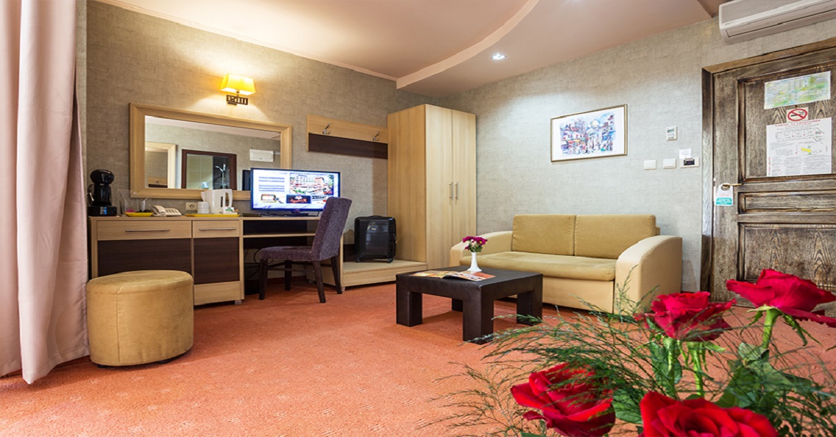 Стаи: Всички помещения са модерно обзаведени с TV, мини бар, интернет, телефони, SOS аларма, противопожарна система, контрол на достъпа, видеонаблюдение и фоново озвучение на коридори и общи части.