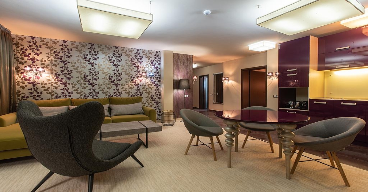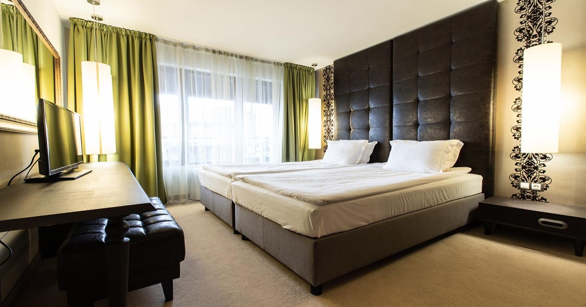 Стаи: Във всички помещения леглата са с матраци от висок клас марка - “Coco – Mat”, направени изцяло от естествени материали. За пълноценен и спокоен сън за нашите гости, хотелът предлага специално меню за възглавници. За удобство на нашите гости помещенията са оборудвани с климатик, LCD телевизор, минибар, сейф, телефон, озвучителна система, кафемашина за Еспресо и кана за чай. Интериорът се отличава със смели цветове и индивидуален стил на обзавеждане.