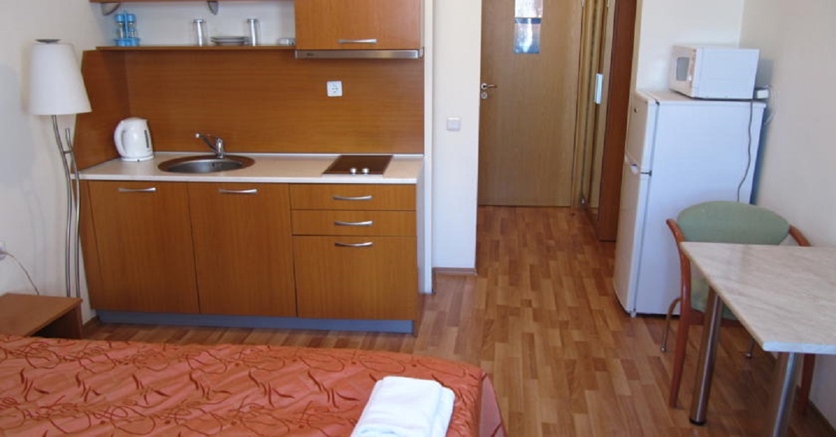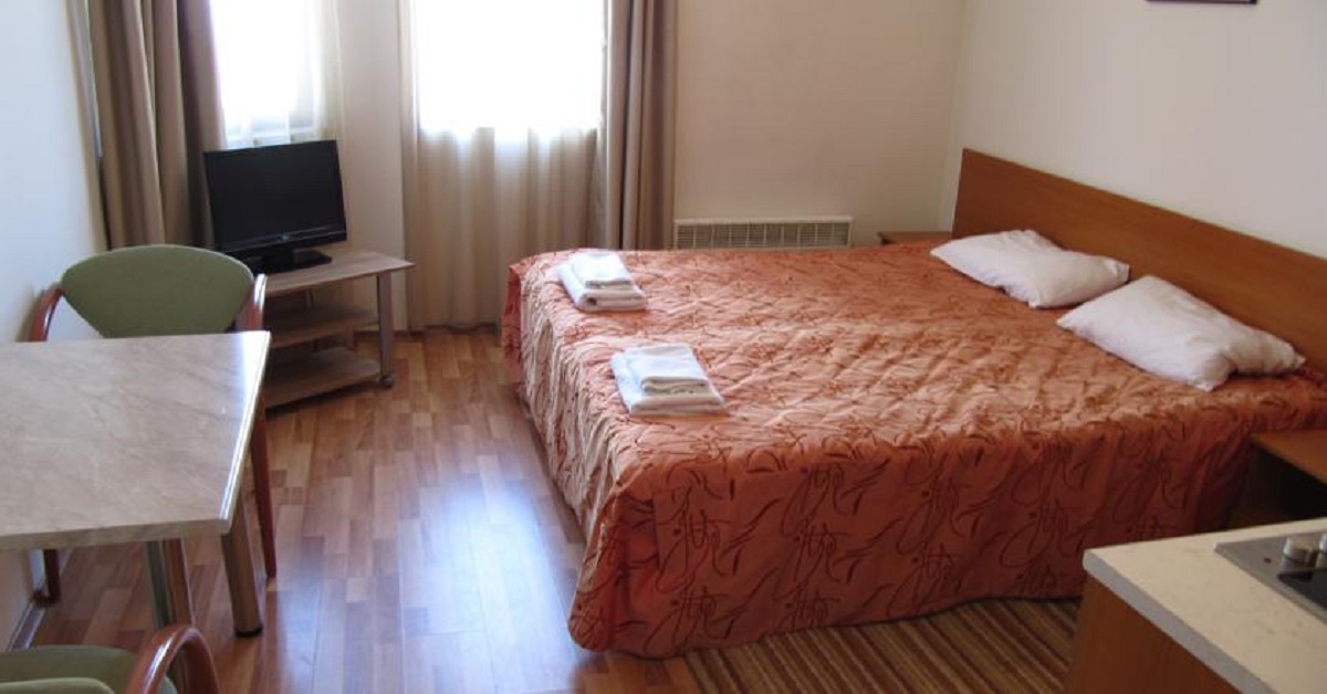 Хотел: Хотелът разполага с 8 студиа, 19 апартамента с една спалня и 7 апартамента с две спални.