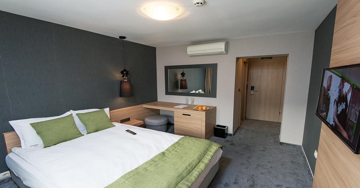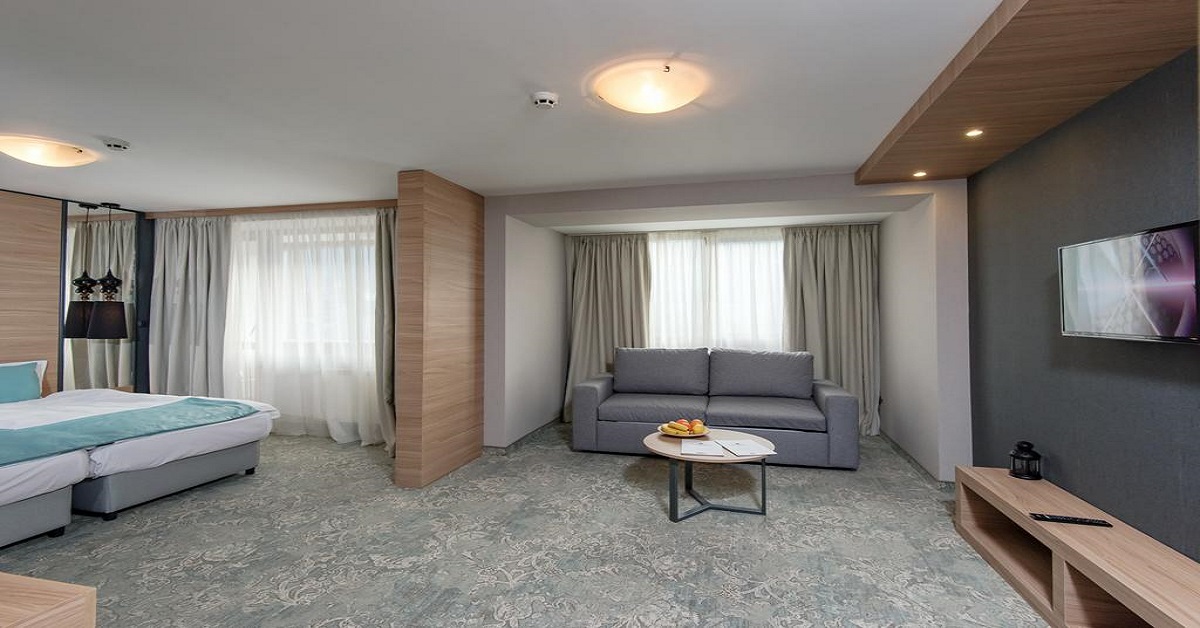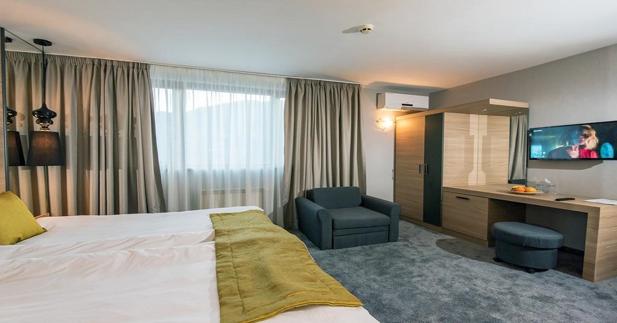 Двойна стая - сателитна телевизия, минибар, луксозен санитарен възел с душ-кабина и сешоар, две отделни легла или спалня, разтегателен диван.