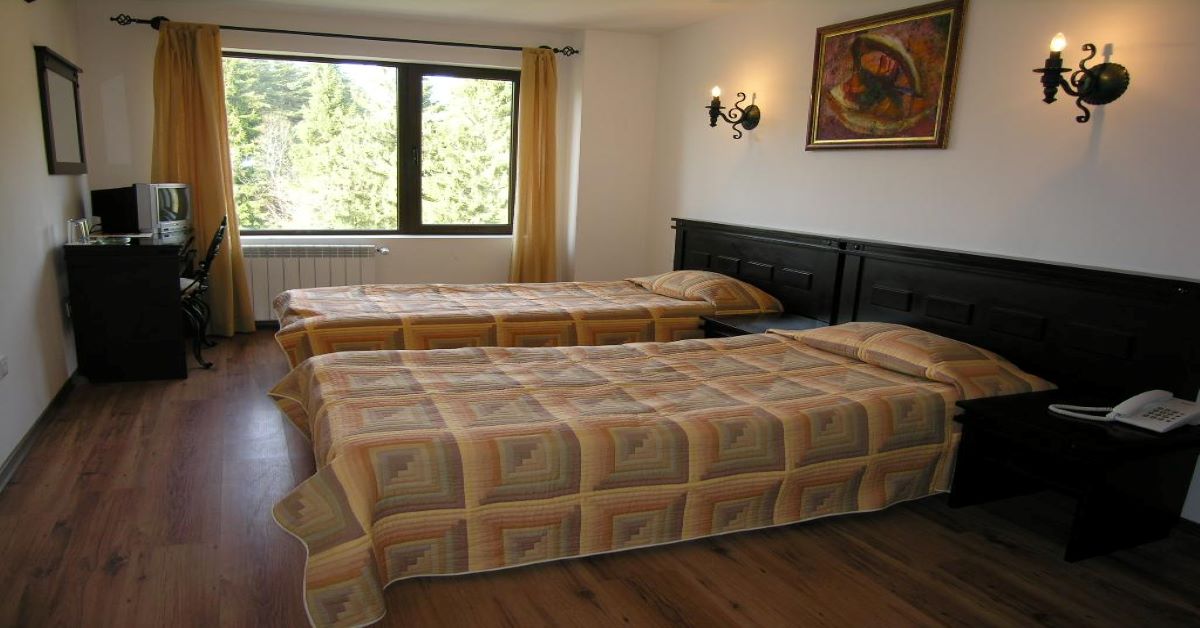 Стаи: Всяка стая е стилно обзаведена и разполага с телевизор с кабелна телевизия, телефон, сешоар, баня с душ/ вана, интернет и тераса, от която се разкрива чудесна гледка от Троянския балкан.