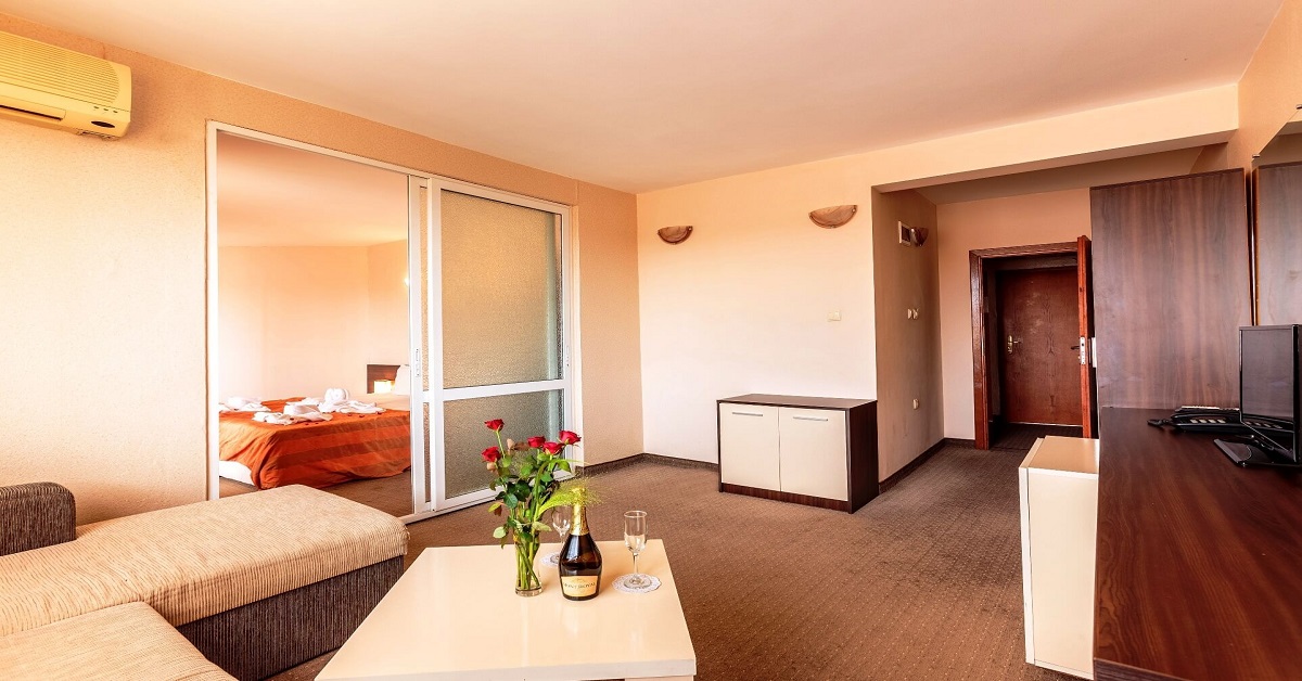 Апартамент с една спалня 40-60 кв.м - състои се от две отделни помещения – хол и спалня - спалня, тоалетка с огледало, мека разтегателна мебел с холна маса, телевизор с кабелна телевизия, телефон, мини бар, климатик, голяма баня с WC, душ кабина, тераса.