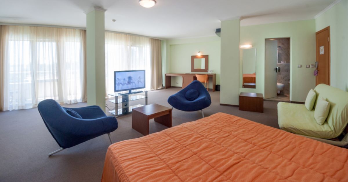 Двойна стая с балкон - разтегателно кресло/диван, възможност до две допълнителни легла. Максимален капацитет 4-ма възрастни.
