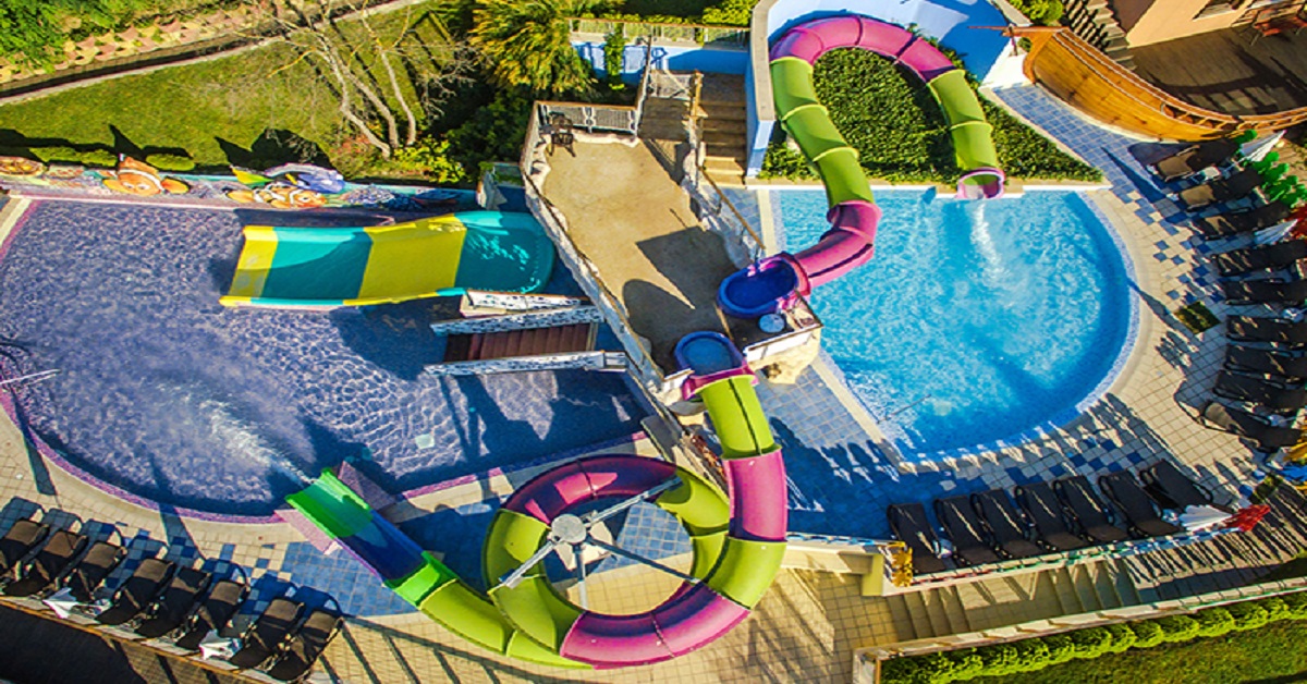 Детски Аква парк с 40 см дълбочина - със слънчева тераса около басейна, безплатно предлагане на шезлонги, чадър и хавлии, спасител.