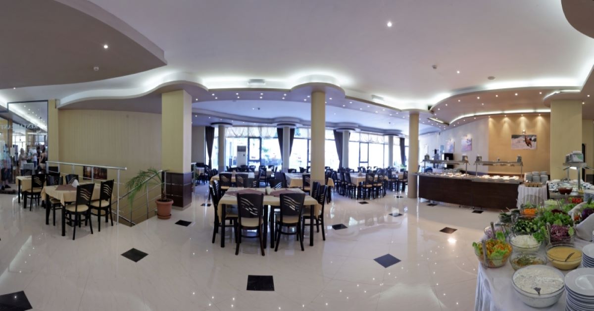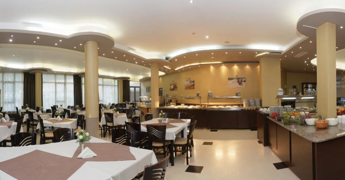 На разположение на гостите на хотел са ресторант с открита тераса; пицария; барбекю тераса; лоби бар; бар-басейн; вътрешен басейн с детскa секция; външен басейн; отделен външен детски басейн с 4 водни пързалки; детска площадка; лекар на повикване; сауна; фитнес кът; магазин; интернет ъгъл; мултифункционално спортно игрище; обмяна на валута; зала с оборудване, използвана за анимация, конференции и различни събития с капацитет до 160 места; 2 асансьора.