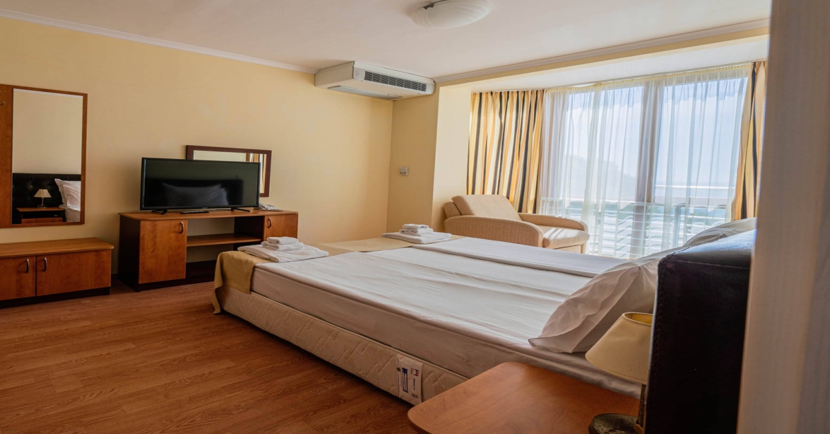 Хотел: Перла Сън Парк Хотел разполага с 50 двойни и 50 фамилни стаи (стая + дневна)