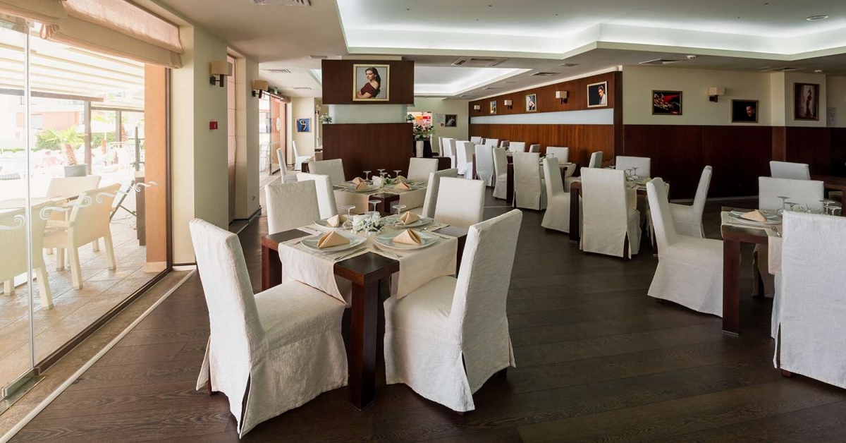 В случай, че има по-малко от 30 госта в основния ресторант, храненията се сервират на меню, а не на блок маса.