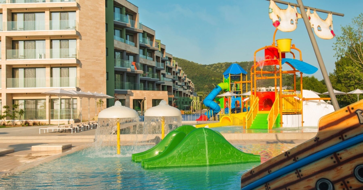 Бебешки и детски басейн с водни пързалки (отопляем);