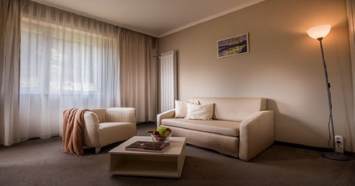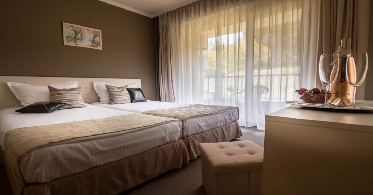 Стаи: Всички стаи са просторни, комфортни и уютни, разполагат с климатик и централно отопление, телефон, телевизор, мини бар, изглед към басейна на хотела или към планината Осогово, балкон - с изключение на 12 единични и 4 тройни стаи. Баните са с душ кабина и заредени с козметика от първа необходимост.