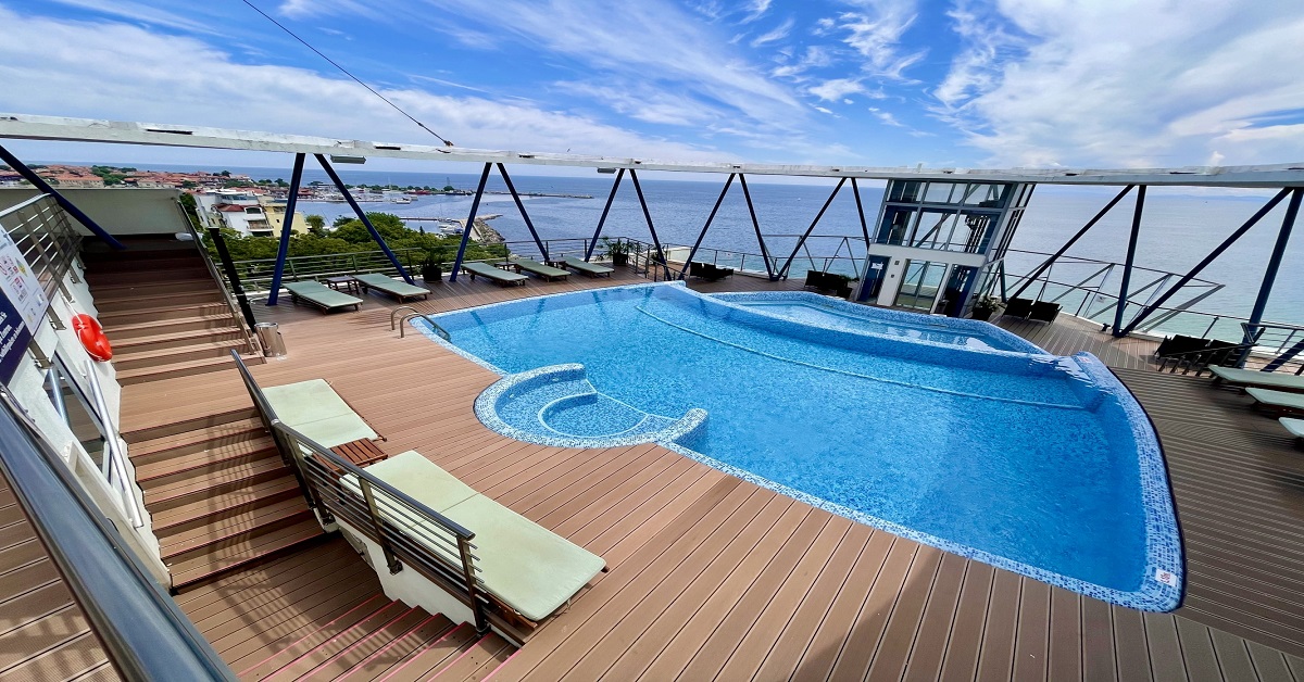 На разположение на гостите на хотела са ресторант, лятната тераса с невероятна морска гледка, Скай бар, Бар Марина (All Inclusive), Лоби бар, открит басейн и джакузи - разположени на покривната част на хотела, 2 конферентни зали (160 и 97 места).