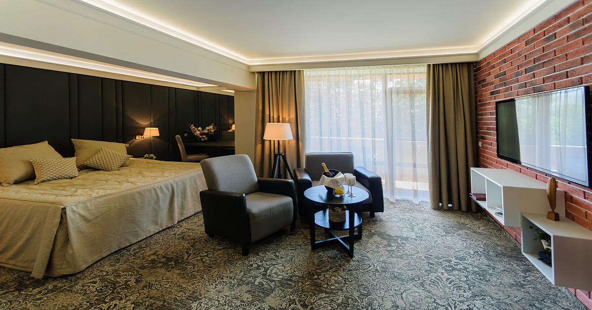 Стаи: Всички помещения са оборудвани с централна климатична инсталация, LCD TV със сателитна телевизия, безжичен интернет, телефон, мини бар, персонален сейф, сешоар, баня с вана или душ кабина. Хотелът разполага със стаи пригодени за хора с намалени двигателни способности, както и със стаи с антиалергична подова настилка.