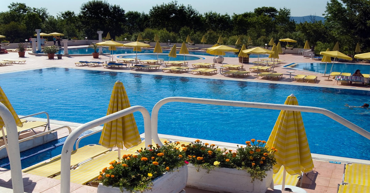 • 4 плувни комплекса, с детски басейни, душове, чадъри, шезлонги, плажни хавлии.
