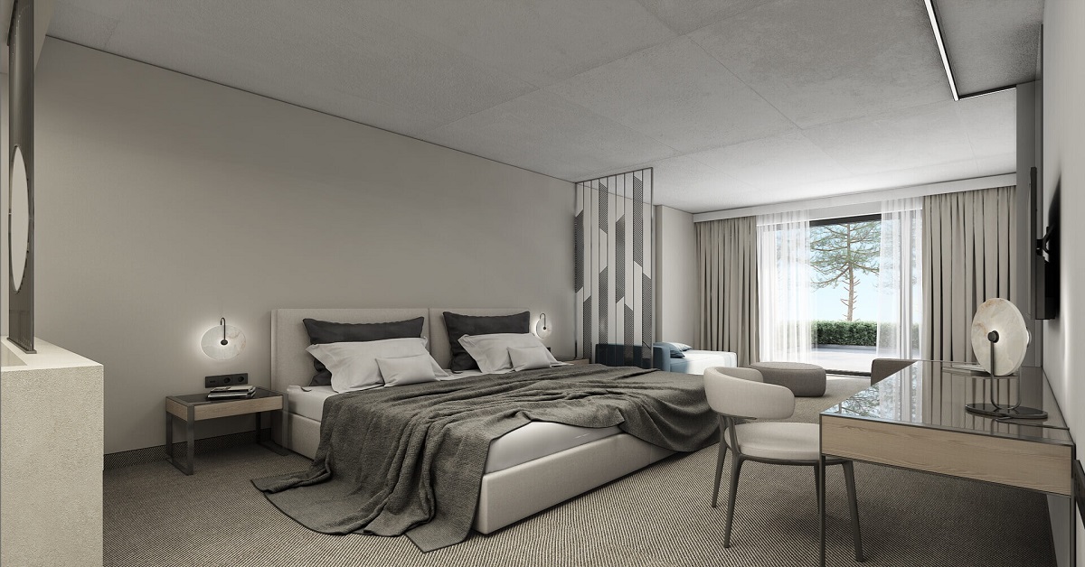 Двойна стая делукс парк King 39 кв.м. - двойно двойно легло king size, климатик, телевизор, телефон, безплатно кафе/ чай веднъж на ден, сейф.