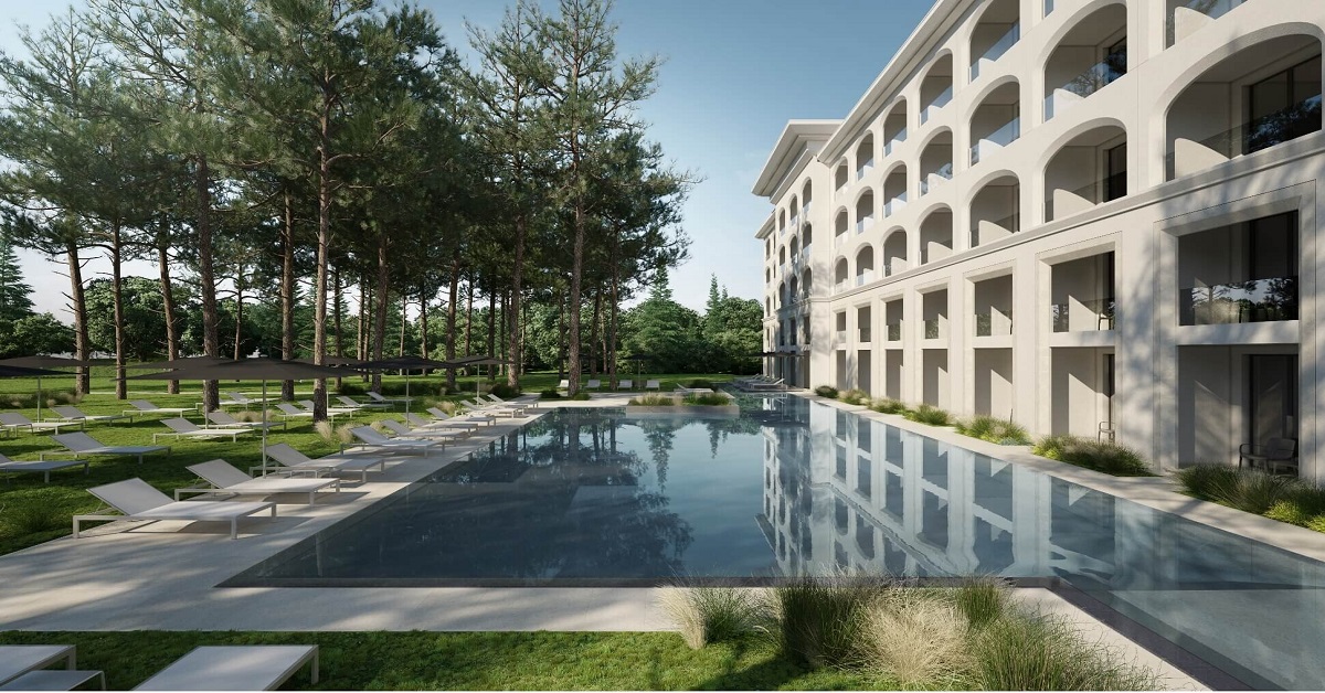 Хотел: Хотелът предлага настаняване в 411 помещения, разпределени на 5 етажа и разполага с 8 асансьора.