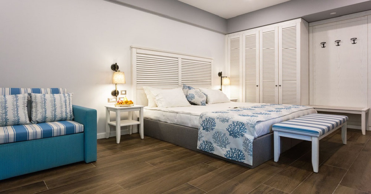 Двойна стая 30 кв.м - разполага с удобни и комфортни легла с матраци от най-висок клас, планински/ морски изглед или на първа линия (в близост до плажа).