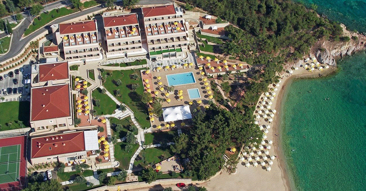 Местоположение: Хотелският кoмплекс е разположен на плажа Paradise Beach на южния бряг на остров Тасос, б близост до близо селището Потос и на 30 км от пристанище Принос.