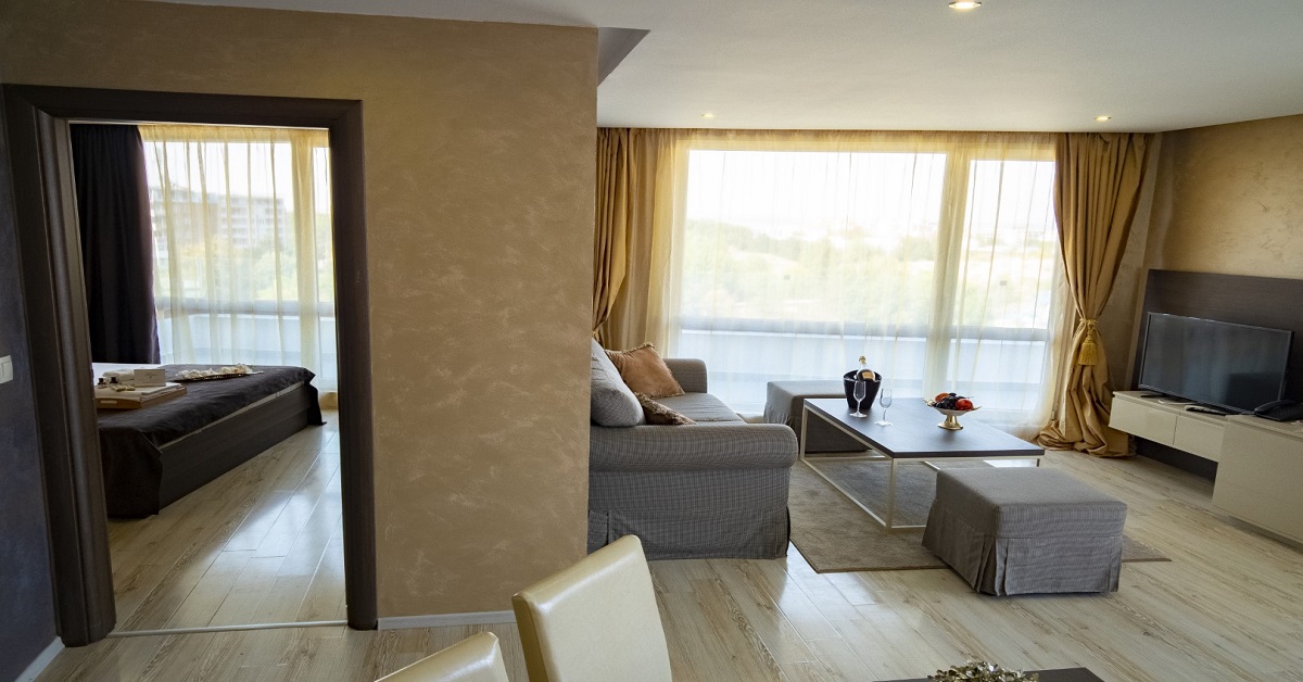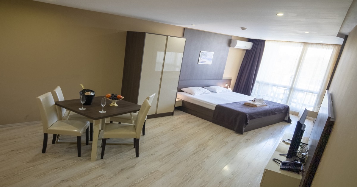 Апартамент с една спалня с гледка море или град, 60-75 m² - състоят се от спалня с удобно двойно легло, отделна всекидневна/хол с разтегателен диван, кухненски бокс, трапезария, баня и тераса.