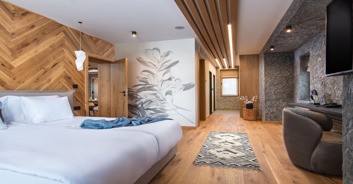 Едноспален апартамент делукс (60-65 кв.м.) - две отделни, преходни помещения (спалня и всекидневна), двойно легло в спалнята, допълнително легло - модулен диван в дневната, просторна гардеробна, машина със зареден сет селектирани топли напитки - чай и кафе, сейф с капацитет за лаптоп, Wi-Fi, широкоекранен телевизор, баня с душ кабина, висок клас козметика, подово отопление и сешоар, ежедневно освежаване на апартамента, индивидуален контрол на климатичната система, мини бар, панорамна тераса.