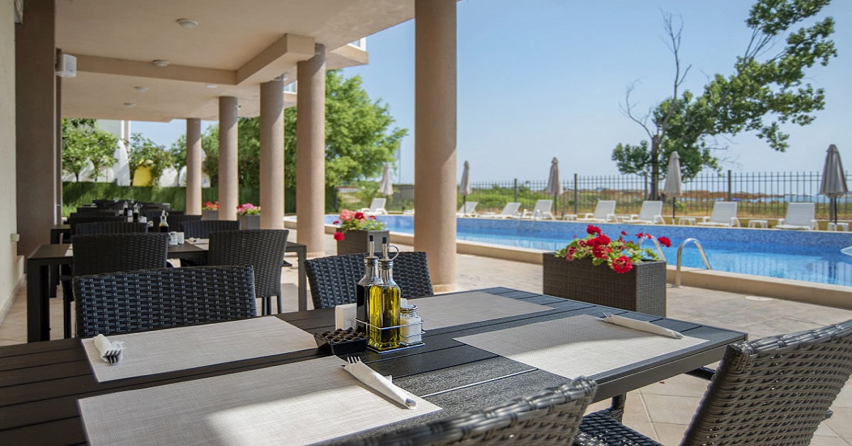 Хотел: Хотелът предлага настаняване в общо 88 помещения – 47 двойни стаи, някои от които с гледка към морето, 6 тройни стаи, 29 студиа и 6 апартамента с гледка към морето.
