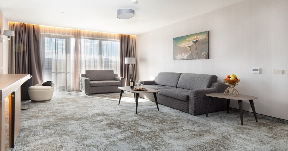 Стаи: Всички помещения разполагат с 55“ LED телевизор, климатична система с индивидуално регулиране, кана за топла вода, сет за кафе и чай, безплатен сейф за съхранение на вещи както и богато зареден /платен/ минибар. Не всички двойни стаи имат тераса!