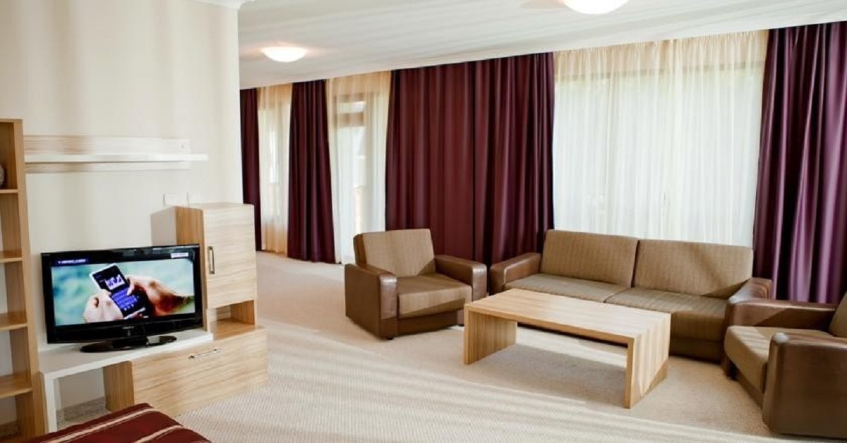 Стая делукс - около 35 кв.м - обзаведена като стая стандарт (две отделни легла или спалня), но по-голяма и с допълнително легло (разт. фотьойл), подходящо за настаняване на дете 4-11.99 год.