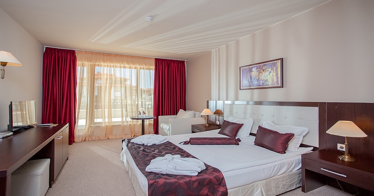 При престой от 10 до 13 последователни нощувки, при настаняване в двойна стая или едноспален апартамент в хотелска част - 1 безплатна нощувка