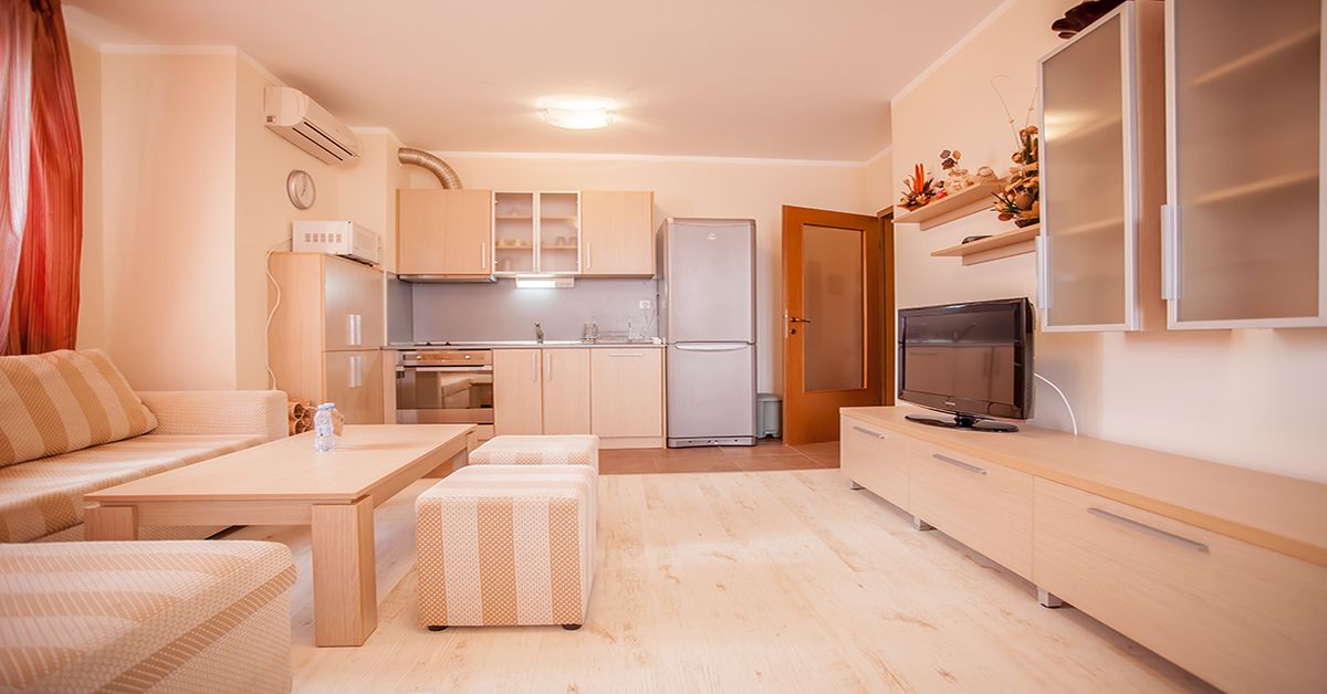| Апартамент с една спалня, хол и кухн. бокс | 2+2 рах | 180/ 230/ 280 | 220/ 280/ 340 | 320/ 380/ 440 | 380/ 440/ 500 |