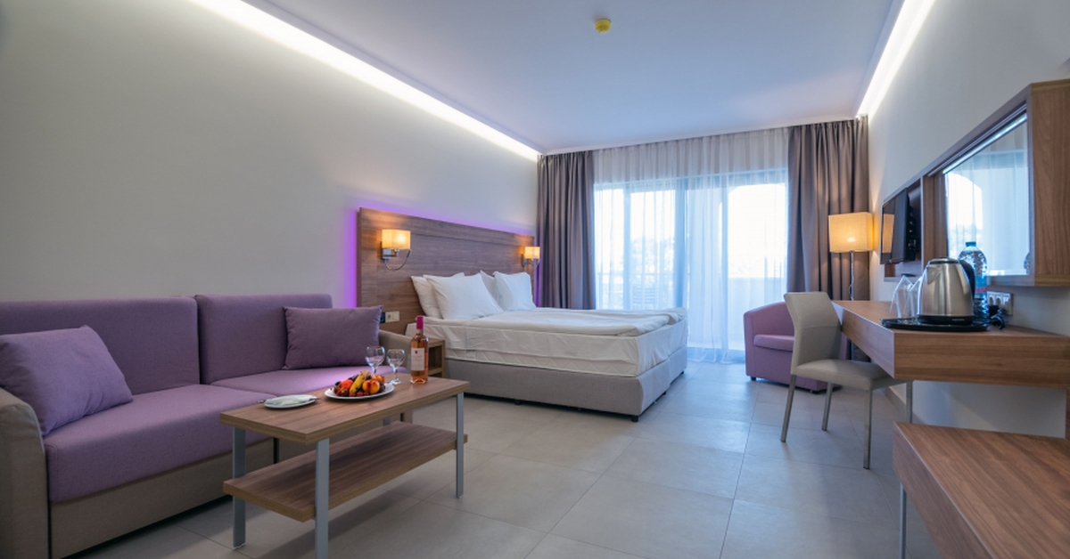 Стаи: Климатизираните (централна климатизация) и комфортни стаи с балкон и санитарен възел (душ, WC, сешоар, телефон) са оборудвани със сателитна телевизия, телефон, Wi-Fi, сейф, минибар (1.5л бутилирана вода ежедневно) и електрическа кана (разтворими кафе и чай). Възможност до две допълнителни легла - разтегателни фотьойли. Максимално настаняване до 4 възрастни.
