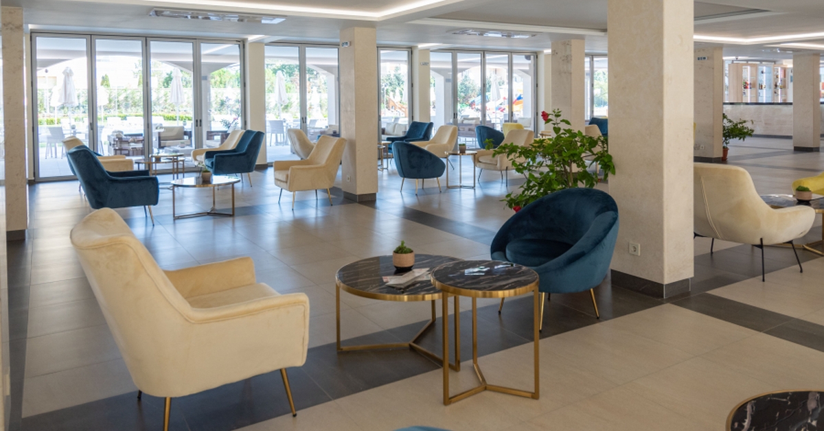 Местоположение: Хотелът се намира в северната част на курорта, на около 150 м от северния плаж, на около 350 м от южния и на около 200 м от центъра на курорта.