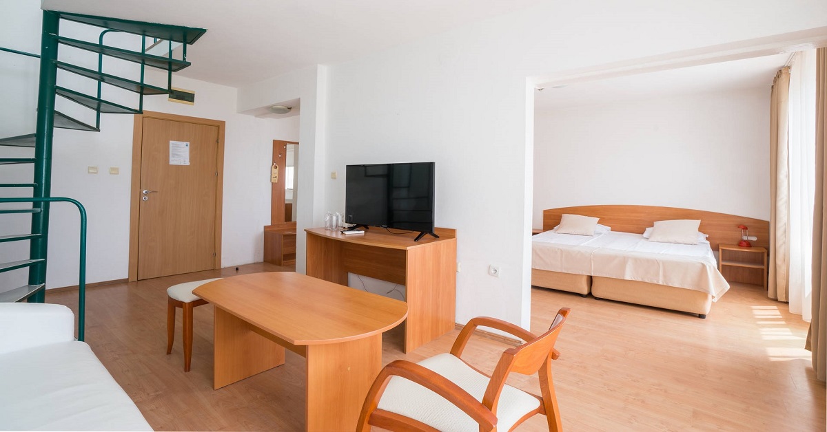 Стаи: Всички помещения разполагат с мини бар, телевизор с плосък екран, цифрова телевизия, индивидуален климатик, баня с душ, гардероб, тераса и безплатен Wi-Fi.