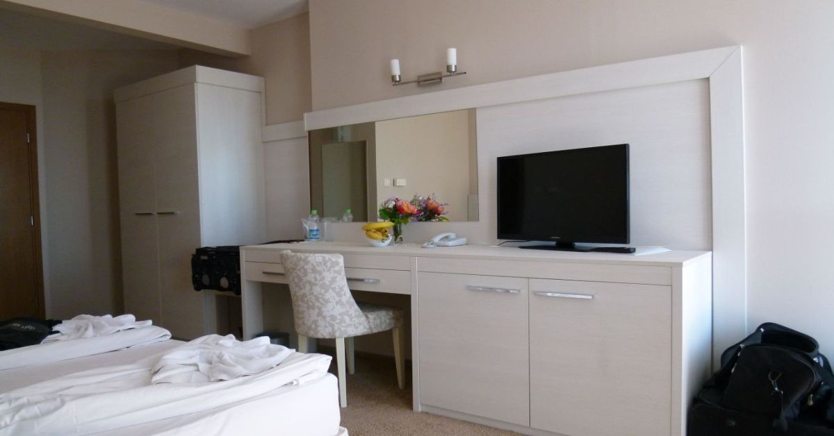 Стаи: Всички стаи са просторни и уютно обзаведени, с 2 редовни и 1 допълнително легло, в апартаментите и 2 допълнителни легла, баня с вана, сателитна телевизия, директен телефон, мини хладилник и широк балкон, централна климатизация и сешоар.
