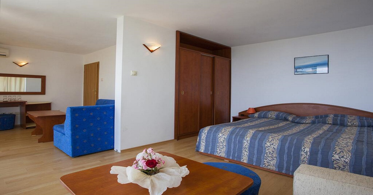Стаи: Двойните стаи са елегантно обзаведени с модерни мебели със кабелна телевизия, минибар, санитарен възел, климатик, телефон и тераса. Стаите са TWIN (с две отделни легла ) или DBL (двойно легло), а някои от тях разполагат с разтегателна мебел (за настаняване на трети човек).